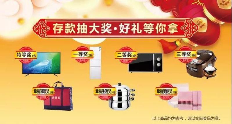 定期存款5萬元以上客戶參與抽獎,每個支行都有奧~獎品如下: