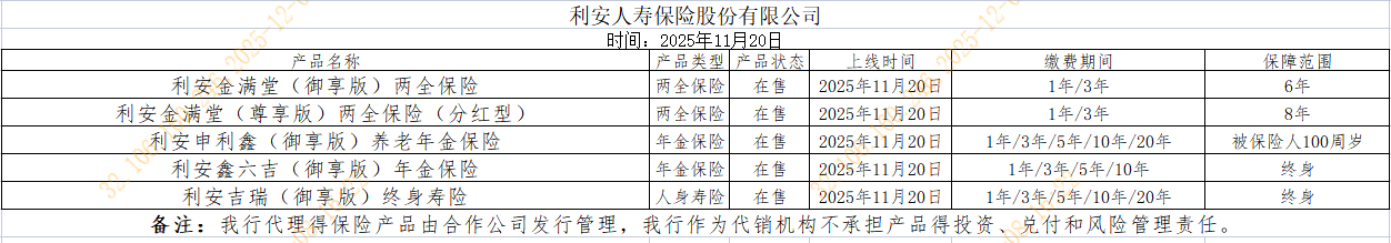 代銷利安人壽保險股份有限公司產(chǎn)品披露